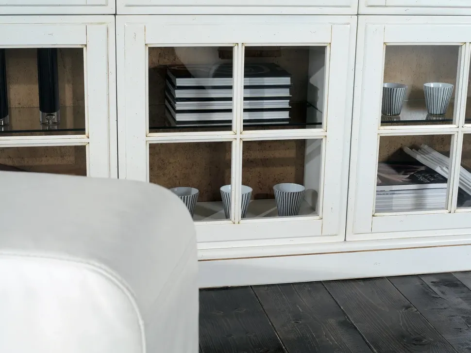 Uno stile unico e linee decise caratterizzano tutti i soggiorni Parlani: la libreria in foto sarà l’ideale per completare stanze in stile classici.