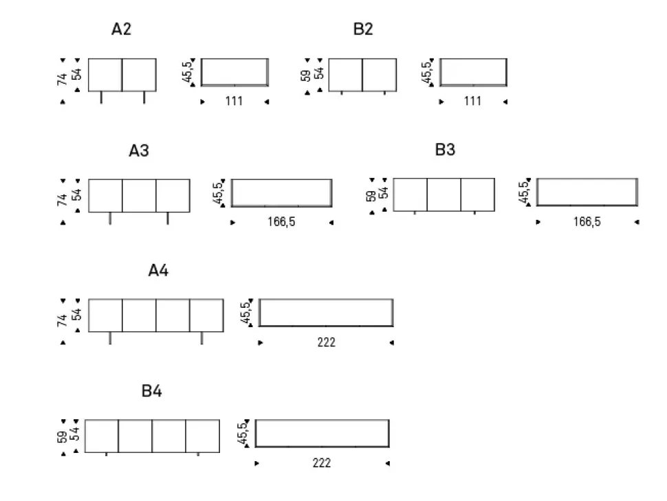 - I mobili devono arricchire gli ambienti interni esaltando anche le doti di funzionalità degli stessi: per non risultare ingombranti, si devono adattare alle misure degli interni in cui trovano posto; ad esempio, il modello mostrato in foto va da 201 a 250 cm in larghezza.
