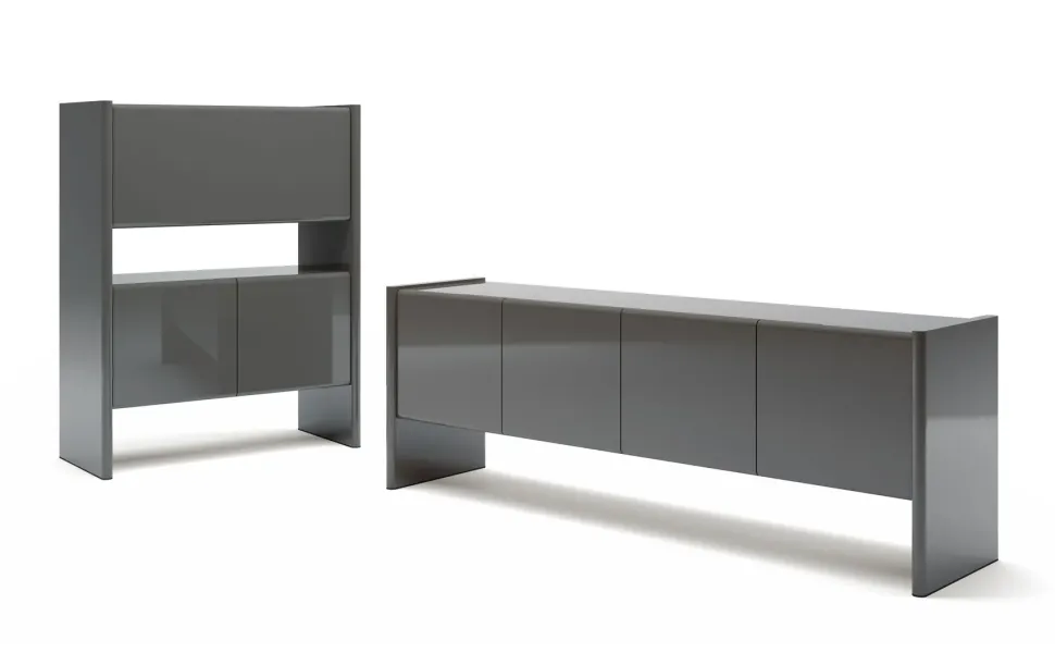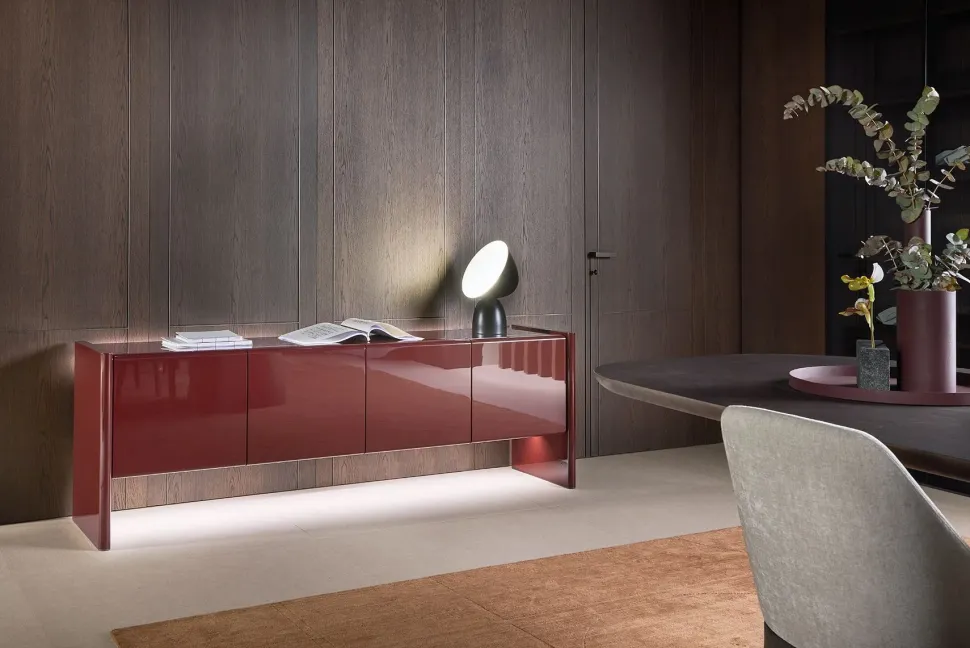 Forme decise e materiali di prima scelta: scopri la madia in laccato lucido qui presente e potrai valorizzare il living.