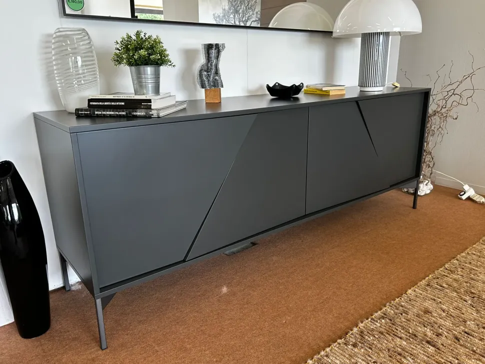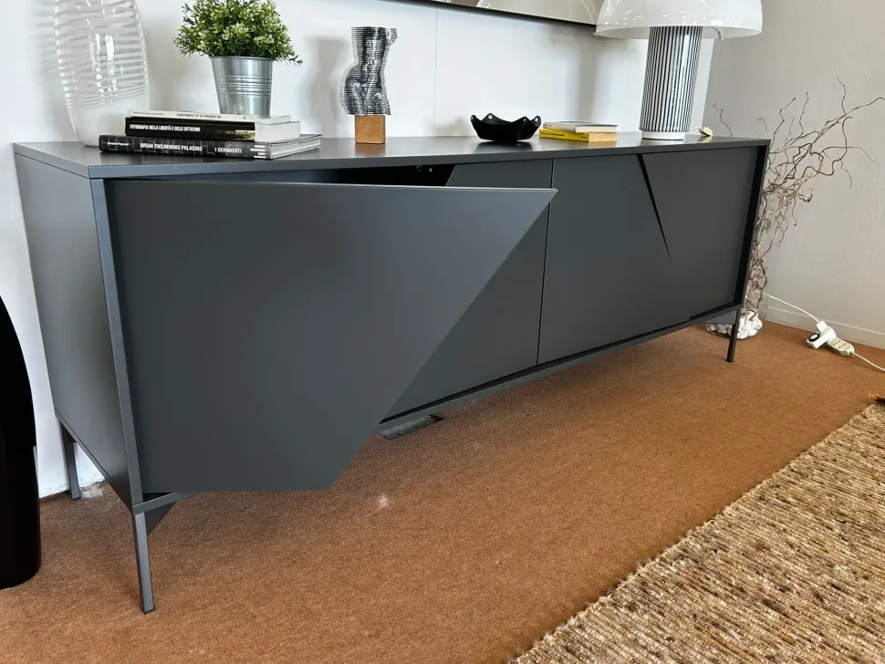 Madia Kendo di AlfDaFrè da 210x50x78h in laccato opaco Modica (antracite) con 4 ante battenti. Internamente dotata di ripiano in vetro.