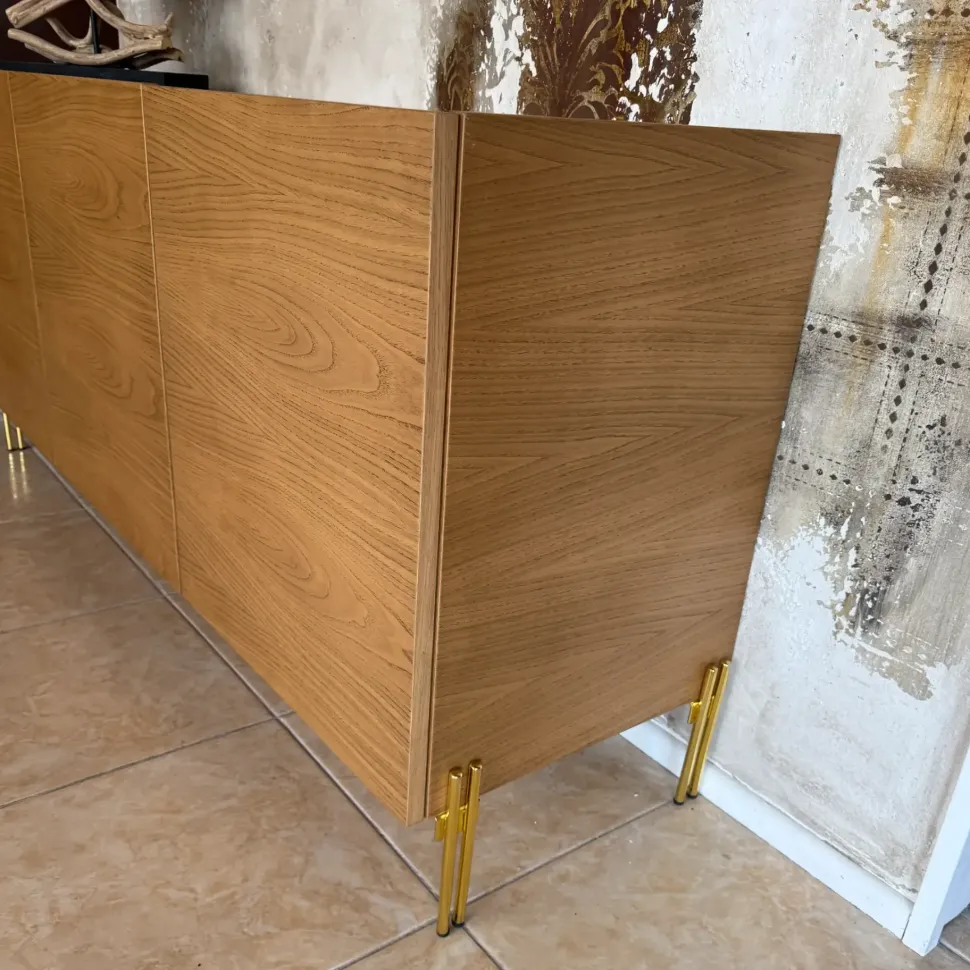 Madia in legno 3 ante slow motion con 3 ripiani interni e piedini in metallo