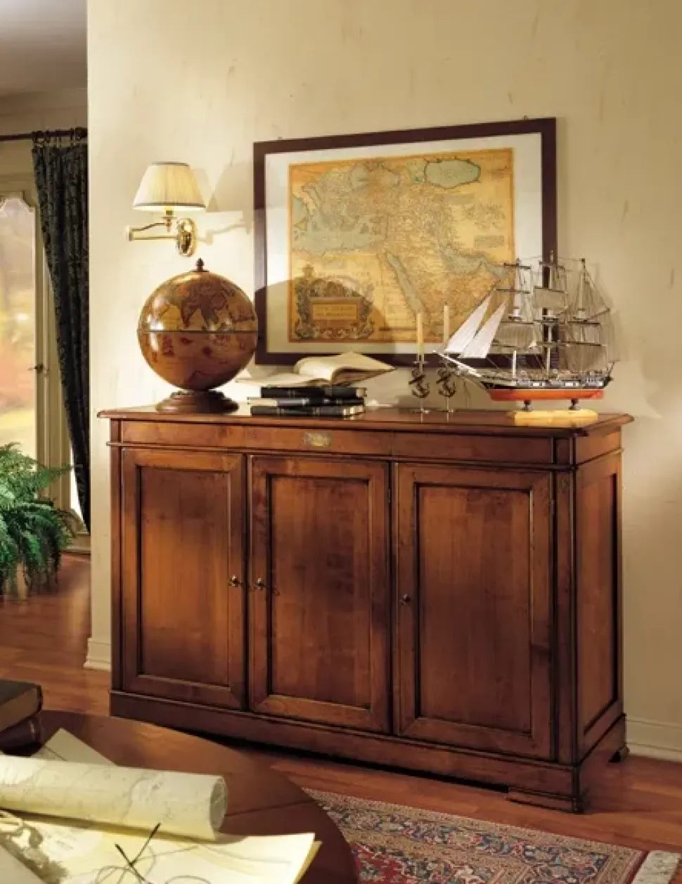 Le madie e i mobili per il soggiorno, come il modello Modello quadrifogli visibile in foto, sono essenziali sia dal punto di vista dell’estetica che per quanto riguarda la funzionalità: potrai riporci libri, oggetti d’uso quotidiano o prettamente decorativo. La madia in legno nell’immagine unisce le doti di funzionalità e stile del locale dando vita a un concept d’arredo classico.