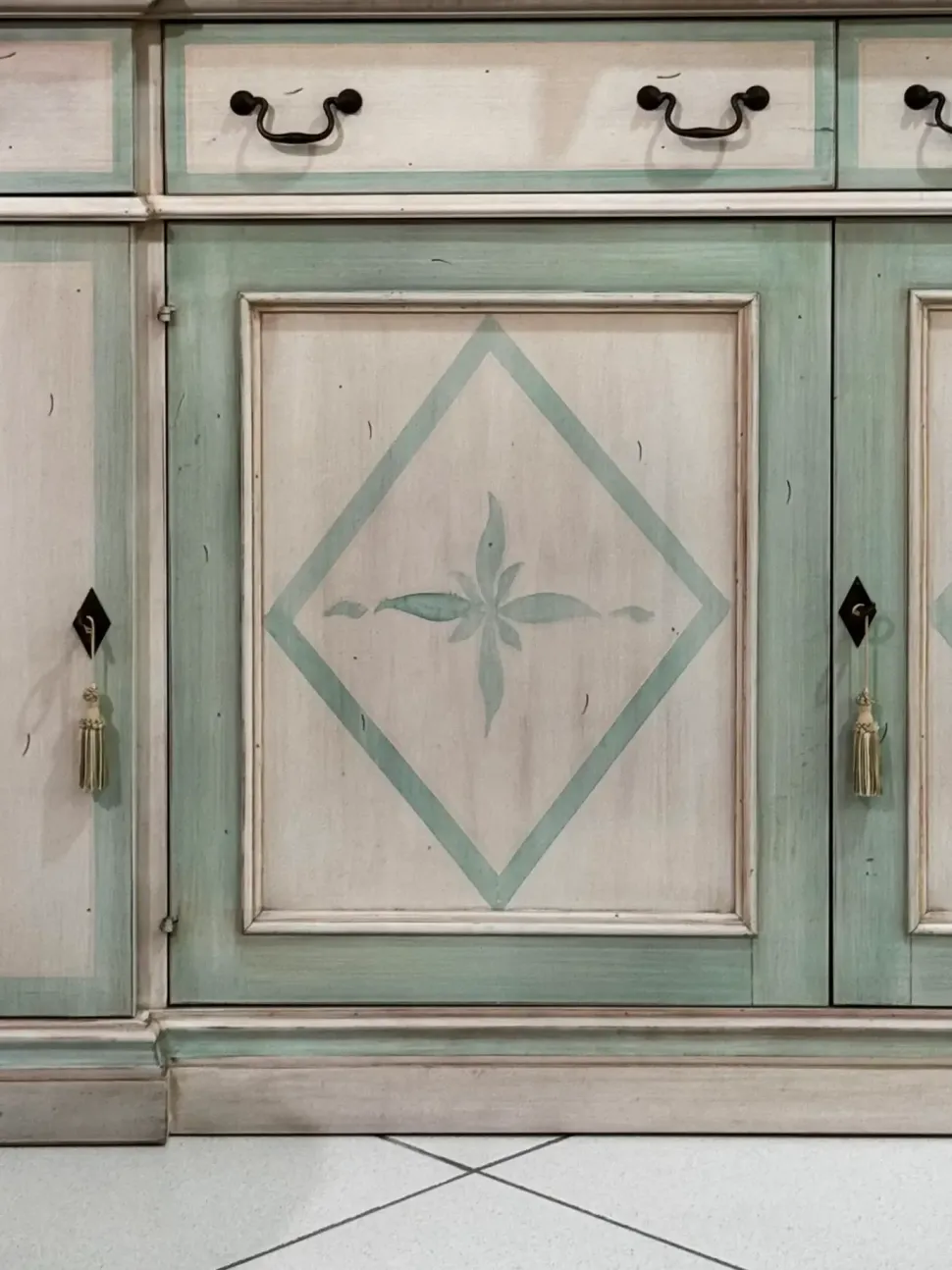 Credenza in stile classico in legno massello laccata e dipinta a mano.