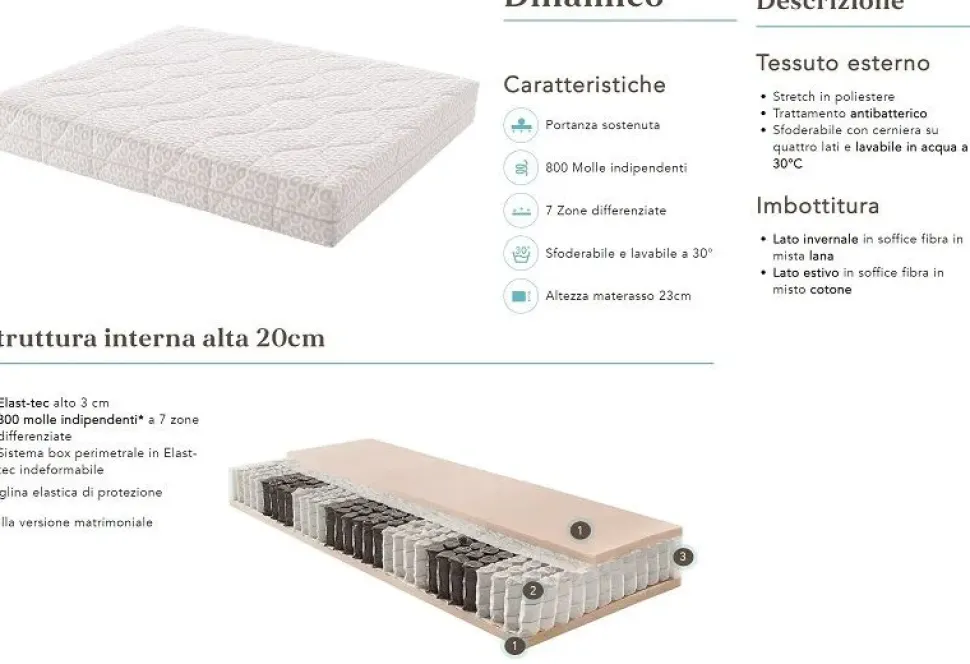 Materasso Dinamico Sogno Veneto: Scheda tecnica