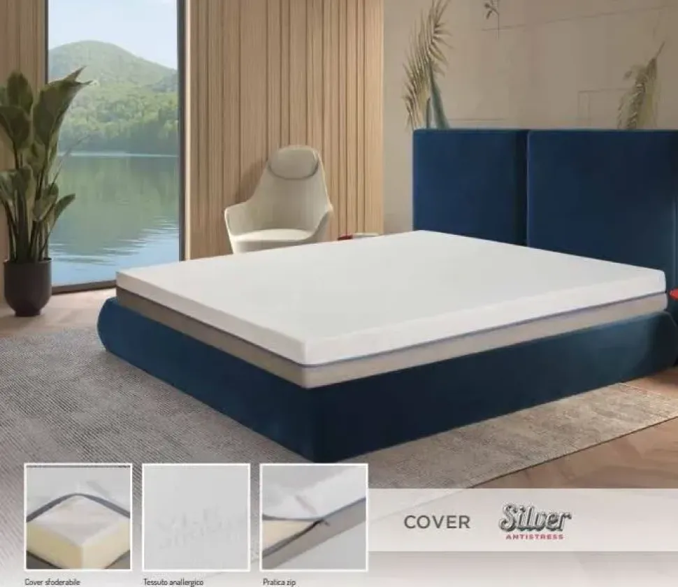 Il rivestimento del lato riposo non è solo un tessuto: è un sistema disinfettante avanzato, con proprietà antimicrobiche, antibatteriche, antimicotiche e anallergiche.