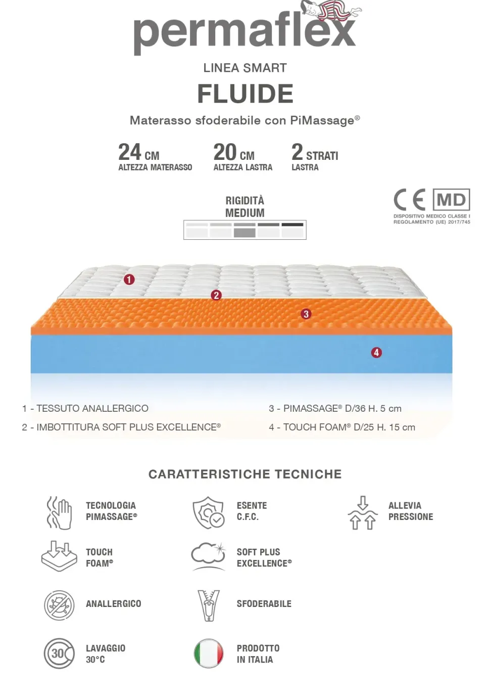 Scheda tecnica materasso Materasso permaflex modello fluide