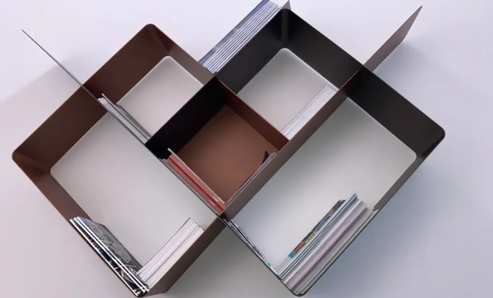 Mondrian è un‘ innovativa libreria componibile. Il modulo base è composto da 2 elementi speculari ad incastro. Per ciascun elemento che compone il modulo base è possibile