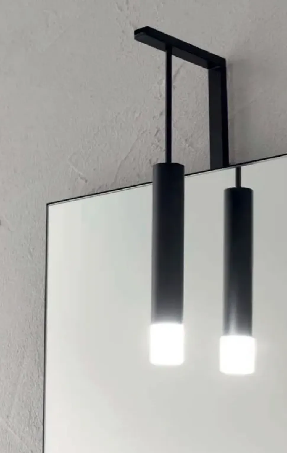 Specchiera illuminata da due faretti mod. PEN posizionati nella parte superiore.