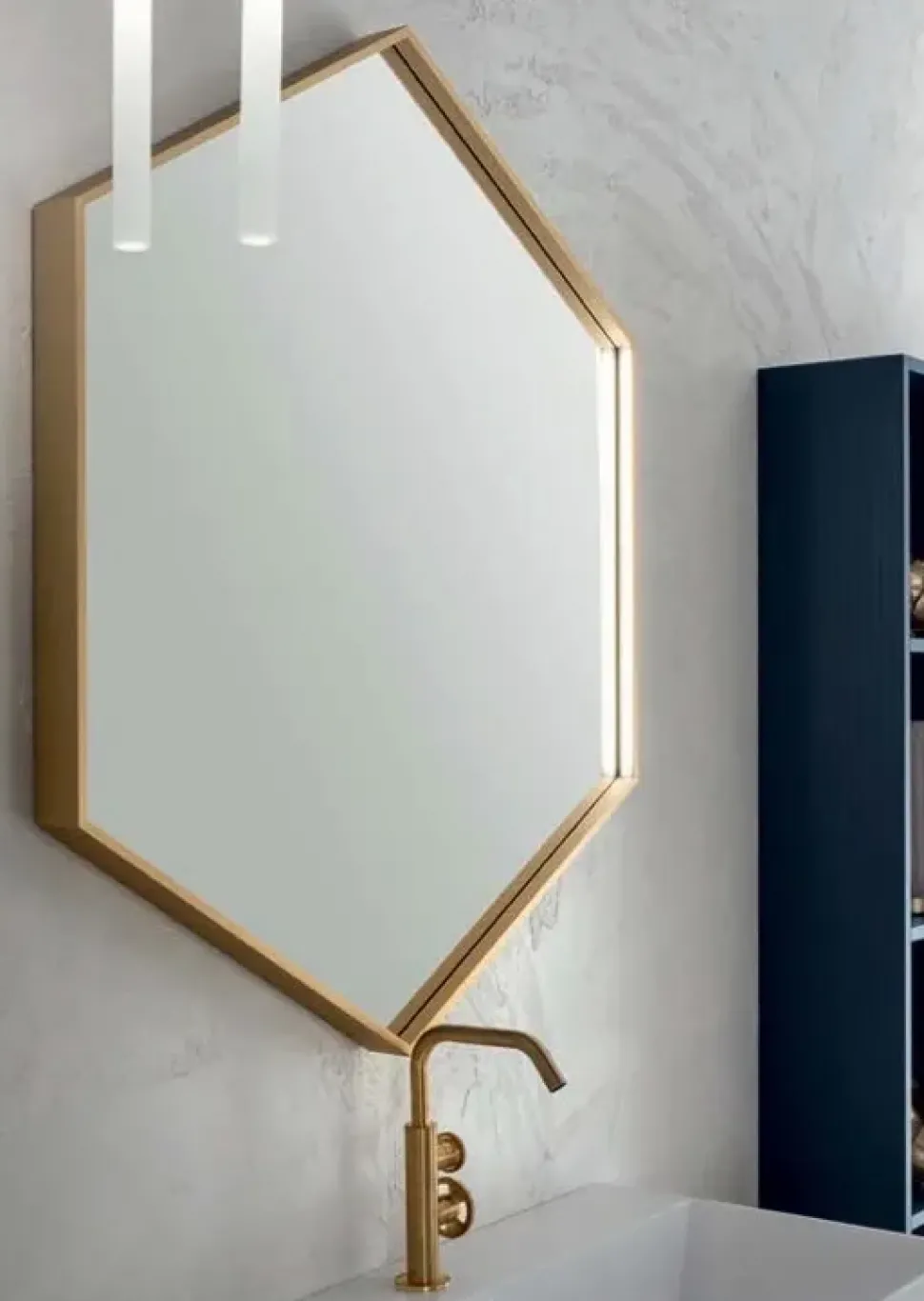 - Il bagno è l’interno di casa che viene dedicato, per eccellenza, alle consuete pratiche di cura personale; per agevolare il tutto, in questa soluzione è compreso altresì uno specchio di classe ed eleganza.