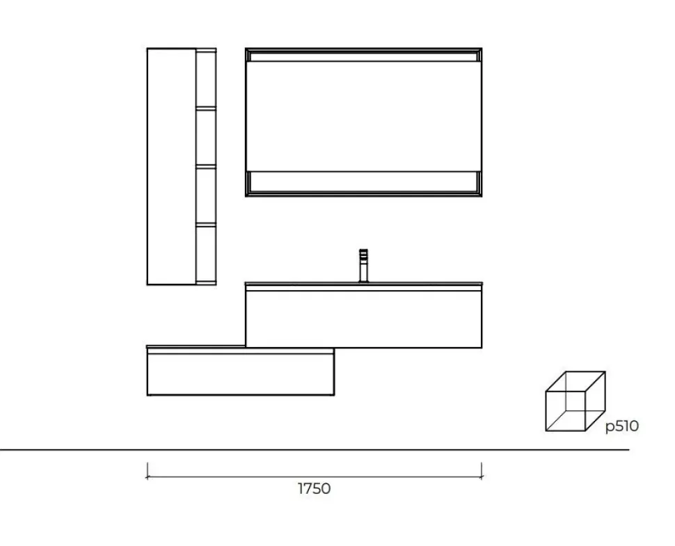 - Base Lavabo (120 cm): Dotata di un cestone per un ampio spazio di contenimento (Lunghezza 120 cm, Profondità 51,3 cm, Altezza 32 cm)