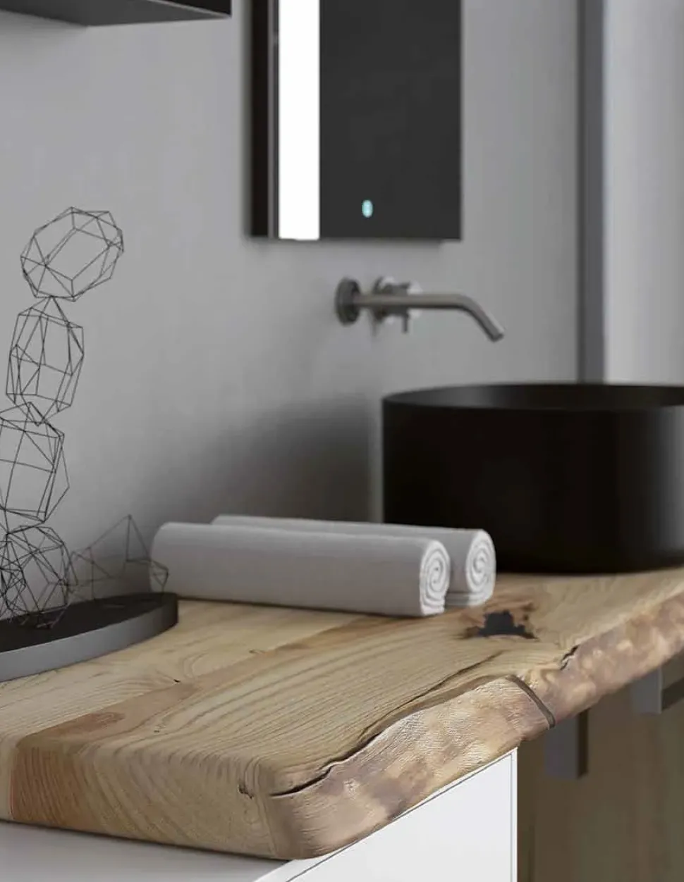 - Durante l’acquisto di un arredo per il bagno è imprescindibile considerare le misure dell’ambiente da ultimare, ma anche lo stile che meglio riflette il tuo stile personale. I materiali e le tonalità verranno abbinati a quelli di rivestimenti e pavimentazioni. Questa soluzione è disponibile in legno.