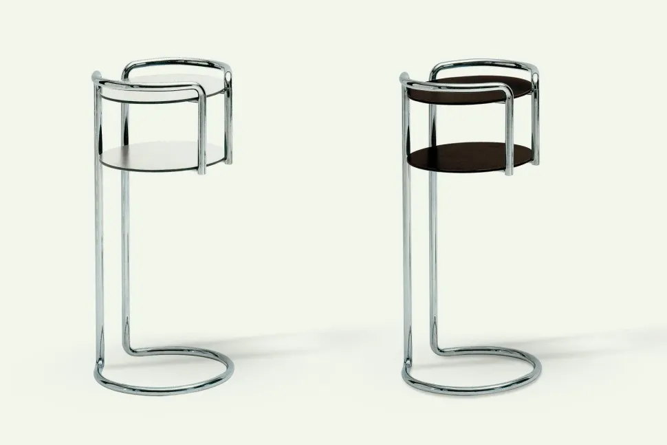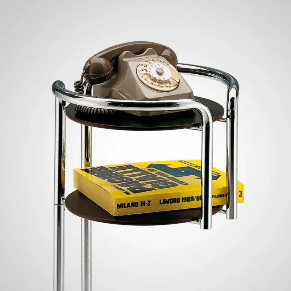 Porta-oggetti / Porta-telefono CHICHIBIO 340 di ZANOTTA Struttura in tubo di acciaio cromato, diametro 20 mm. Pianetti in laminato plastico stratificato, spessore 8 mm, colore Bianco / Nero Designer: Gino Levi Montalcini e Giuseppe Pagano Pogatsching, 1932 Dimensione: Diametro 37,5 x H 90 La descrizione si riferisce all’articolo fotografato e l’immagine è a solo scopo esplicativo. Il prodotto è disponibile nelle diverse varianti e finiture sopra descritte, per qualsiasi necessità e chiarimenti vi invitiamo a contattarci direttamente.