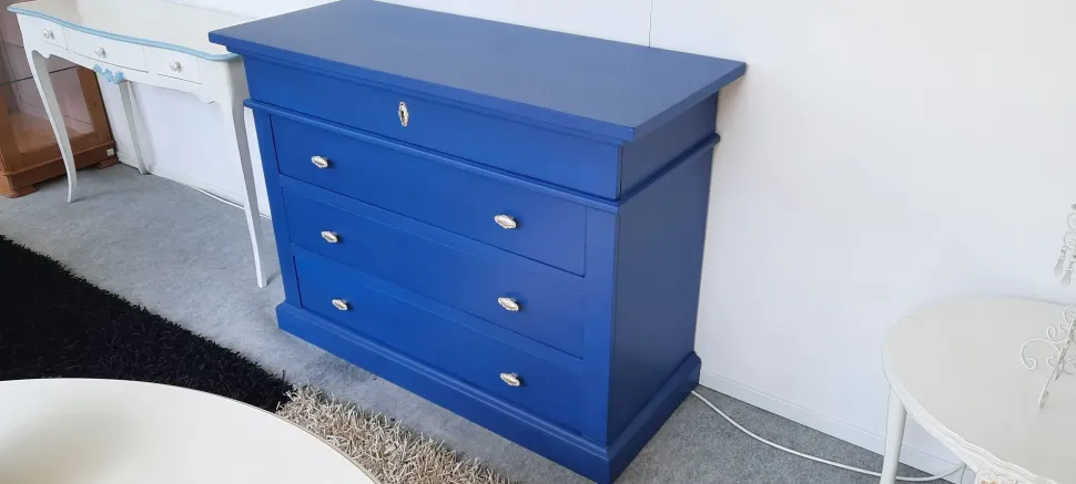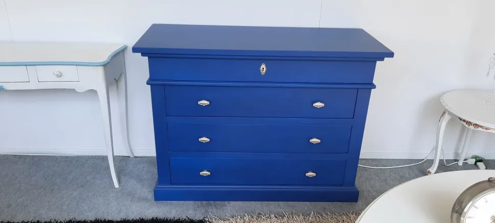 I Solisti è un comò in legno massiccio, laccato color blu indaco opaco.