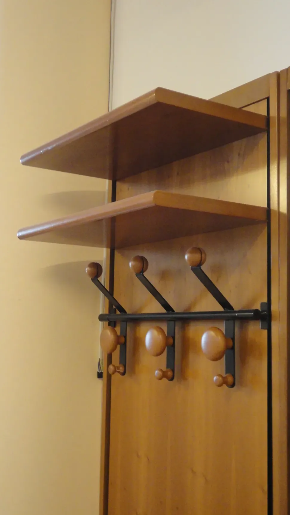 Il mobile di ingresso , è in effetto legno noce completo di ripiani e appendiabiti.