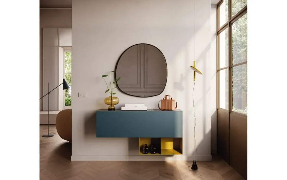 - Il modello presente in foto è un mobile sospeso, multifunzionale e capiente, della nostra collezione di mobili per l’ingresso dell’azienda, leader del settore.