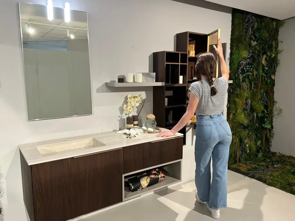 In sintesi, il bagno Arbi Alma con castagno affumicato naturale e top Florim Travertino rappresenta una