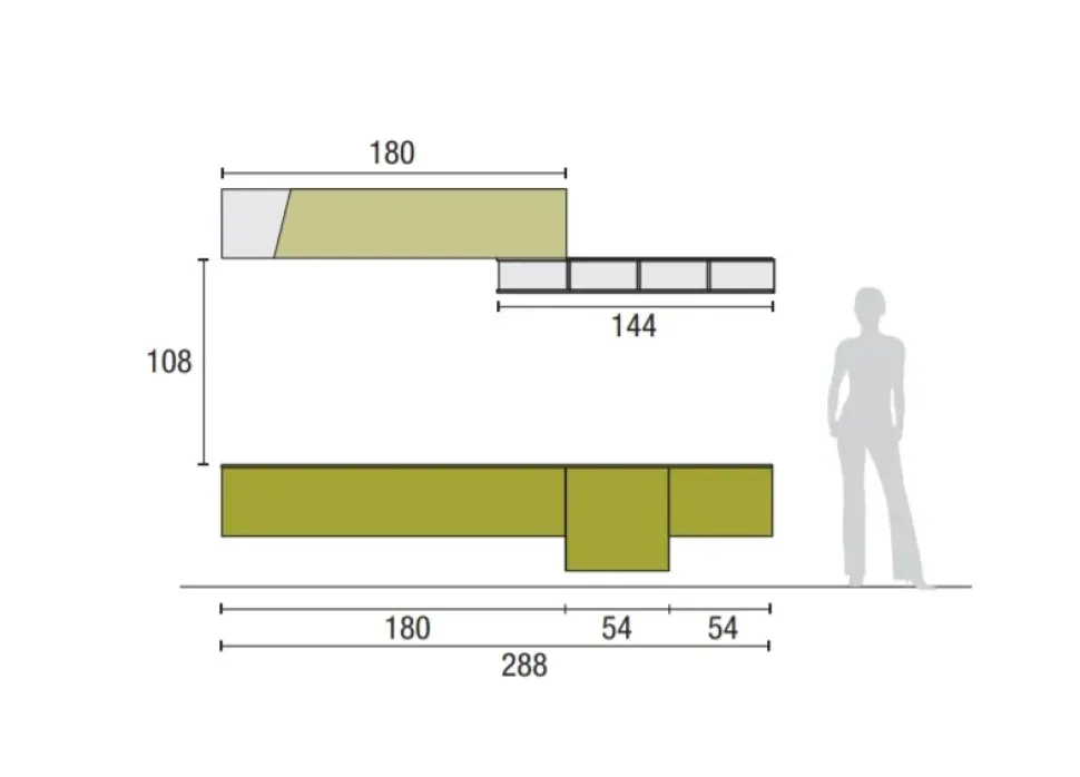 La parete attrezzata Atlante skt16 ha una larghezza che va da 251 a 300 cm ed è perciò ideale per locali di molteplici misure e forme.