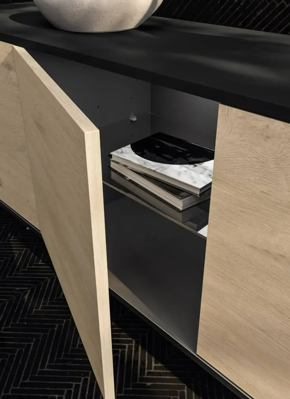 Un design unico e linee decise caratterizzano questa soluzione, rendendola ideale per ultimare stanze design.