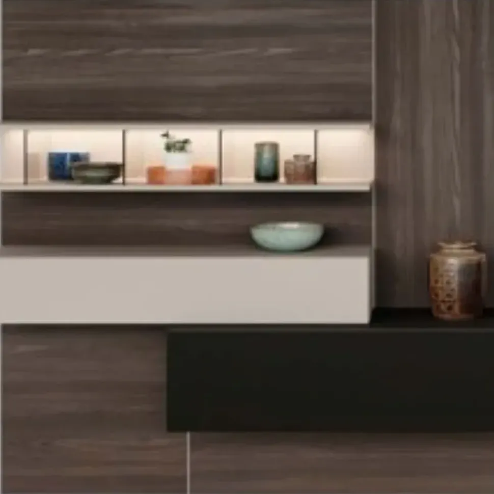 Per impreziosire un living moderno scegli una parete attrezzata che mantenga una certa coerenza di stile, come questo modello Composizione 5 b a prezzo ribassato.