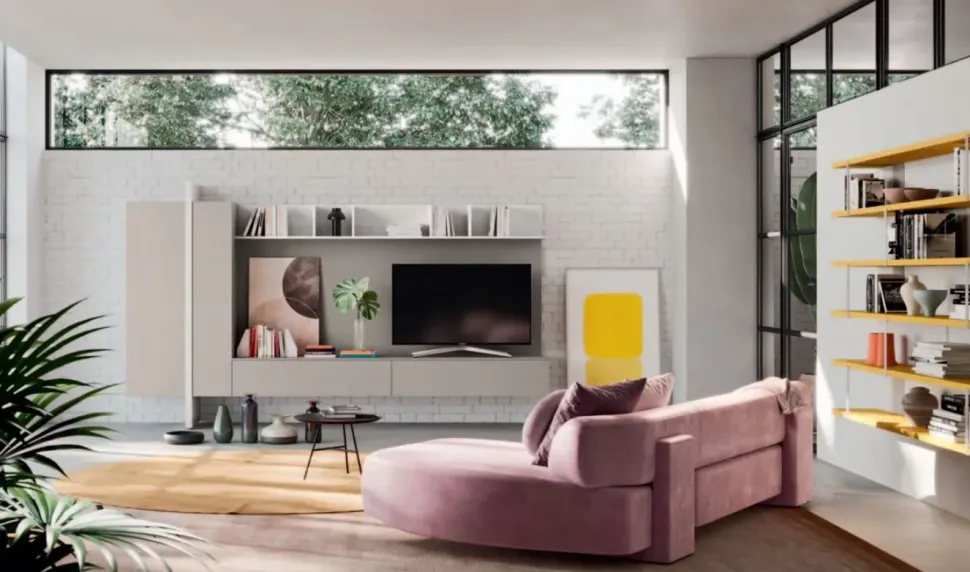 - Per completare un living design opta per una parete attrezzata che mantenga una certa coerenza stilistica, come questo modello Day 09 a prezzo ribassato.