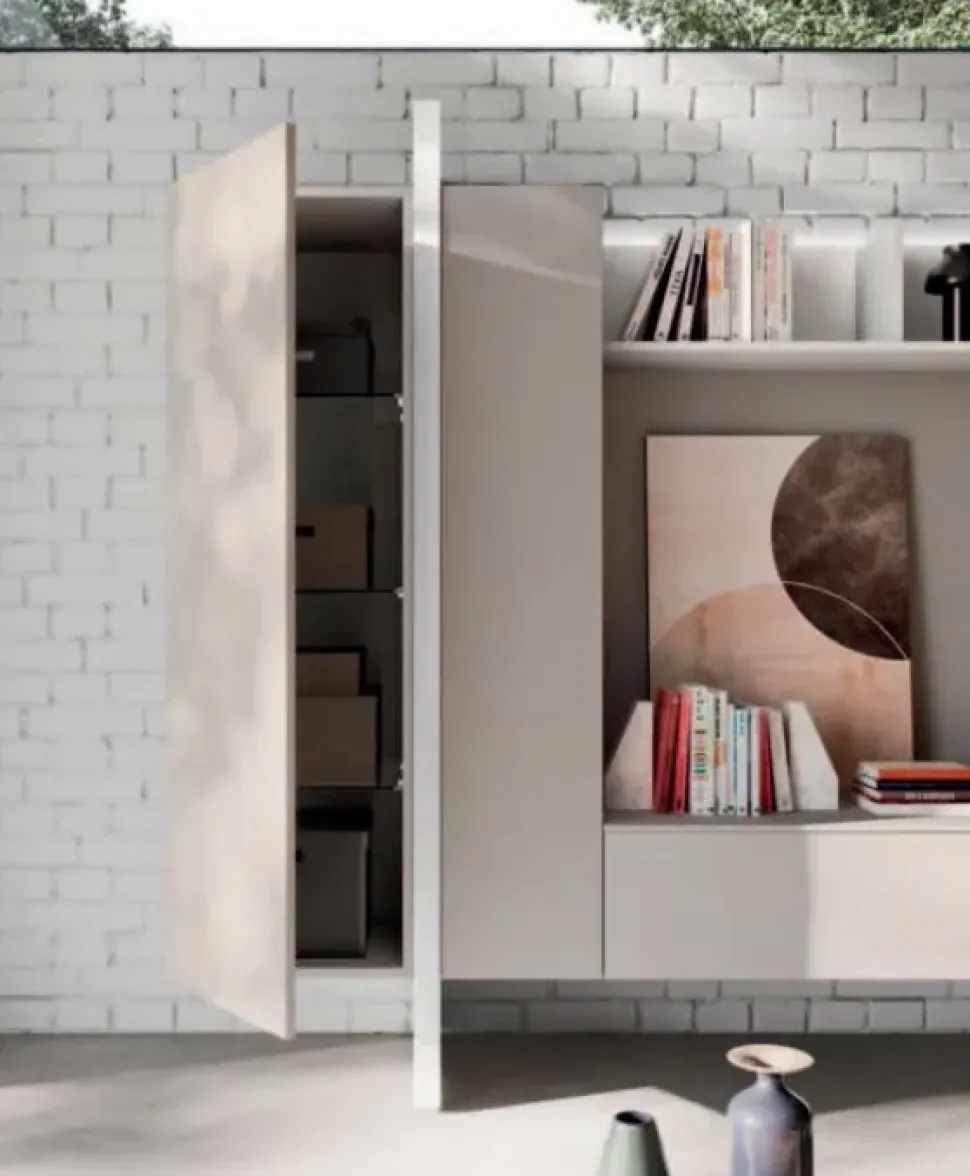 - La plurifunzionale e ampio parete attrezzata nella fotografia è un mobile sospeso che fa parte della nostra linea di mobili e complementi di Orme, leader del settore.