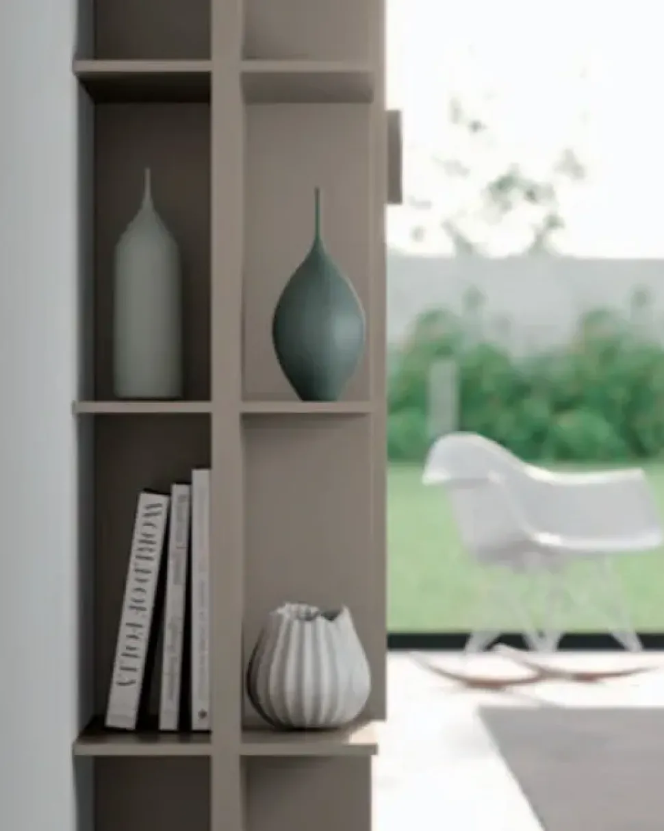 Ogni dettaglio è studiato per un estetica pulita e ordinata, con ampi spazi espositivi e contenitivi che si adattano perfettamente a ogni esigenza abitativa.