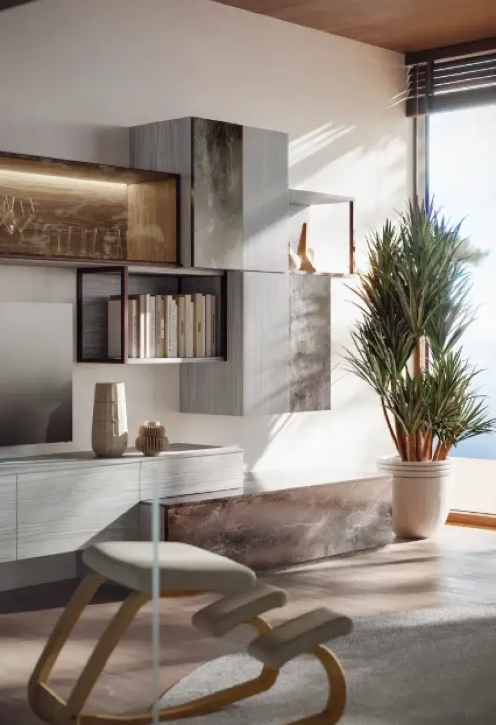 Linee decise e uno stile unico contraddistinguono questa composizione per il living, rendendola ideale per completare uno spazio in stile moderno.