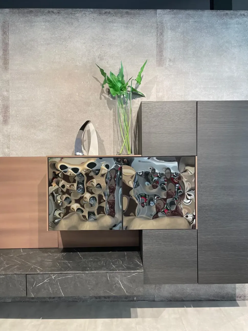 Finiture: rovere briccola , marmo scuro , rame reflex