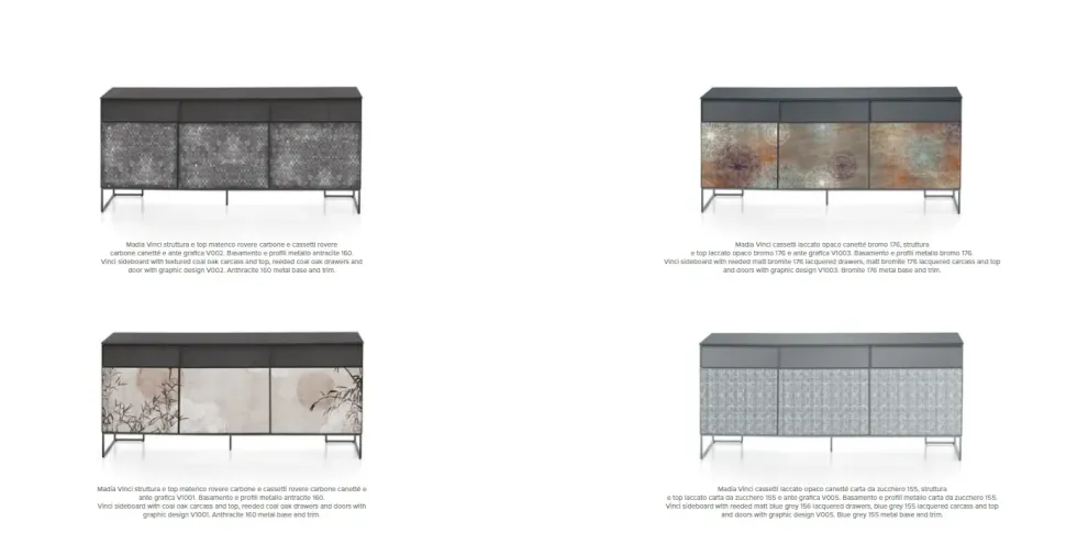 Particolarmente degno di nota è il basamento in metallo, tono su tono con il resto della madia, che conferisce leggerezza alla struttura e garantisce un perfetto equilibrio tra funzionalità e design.