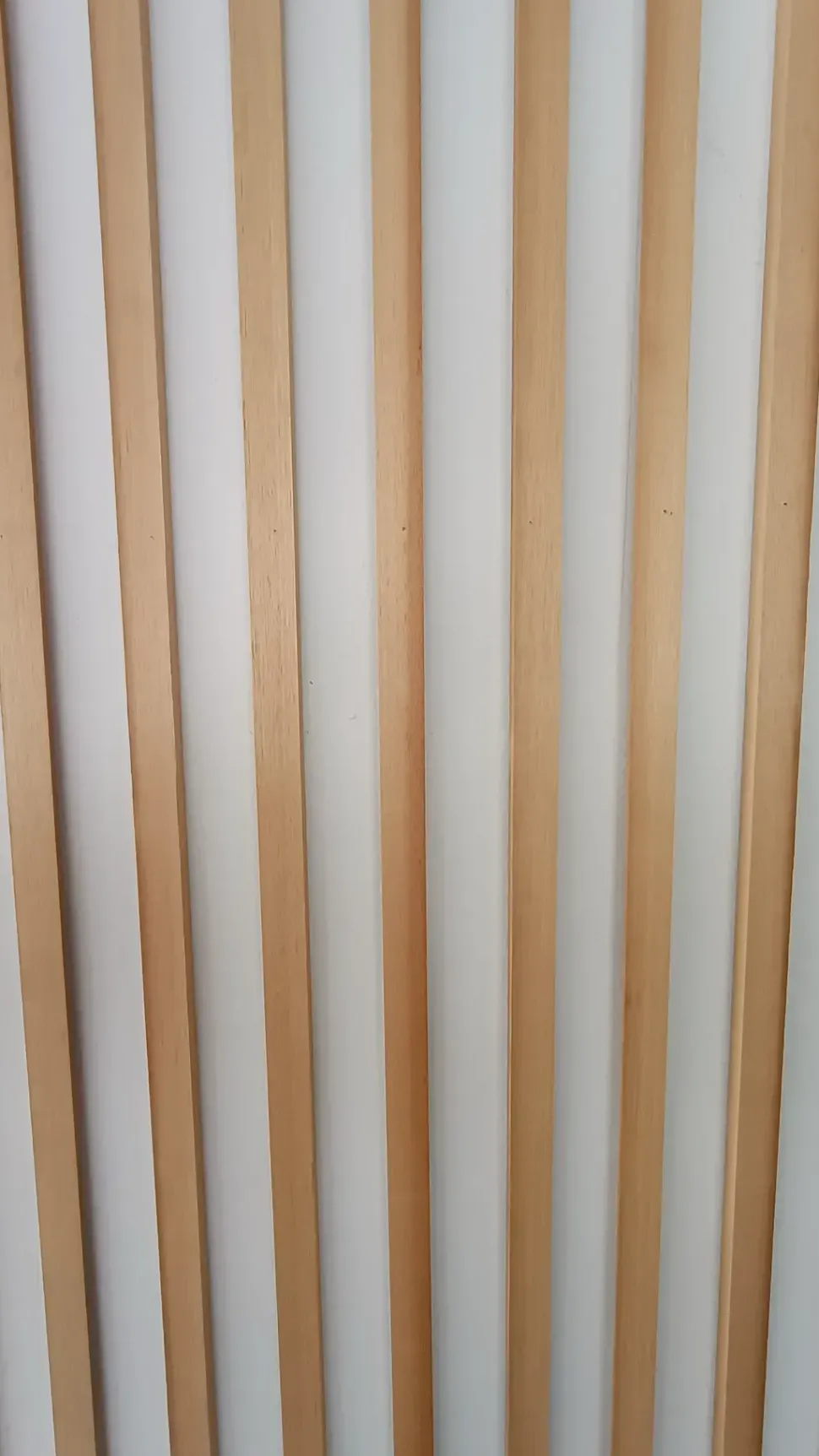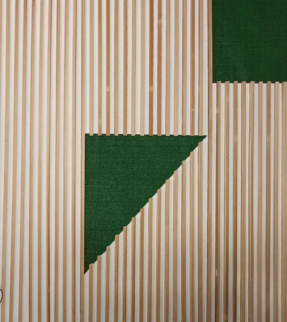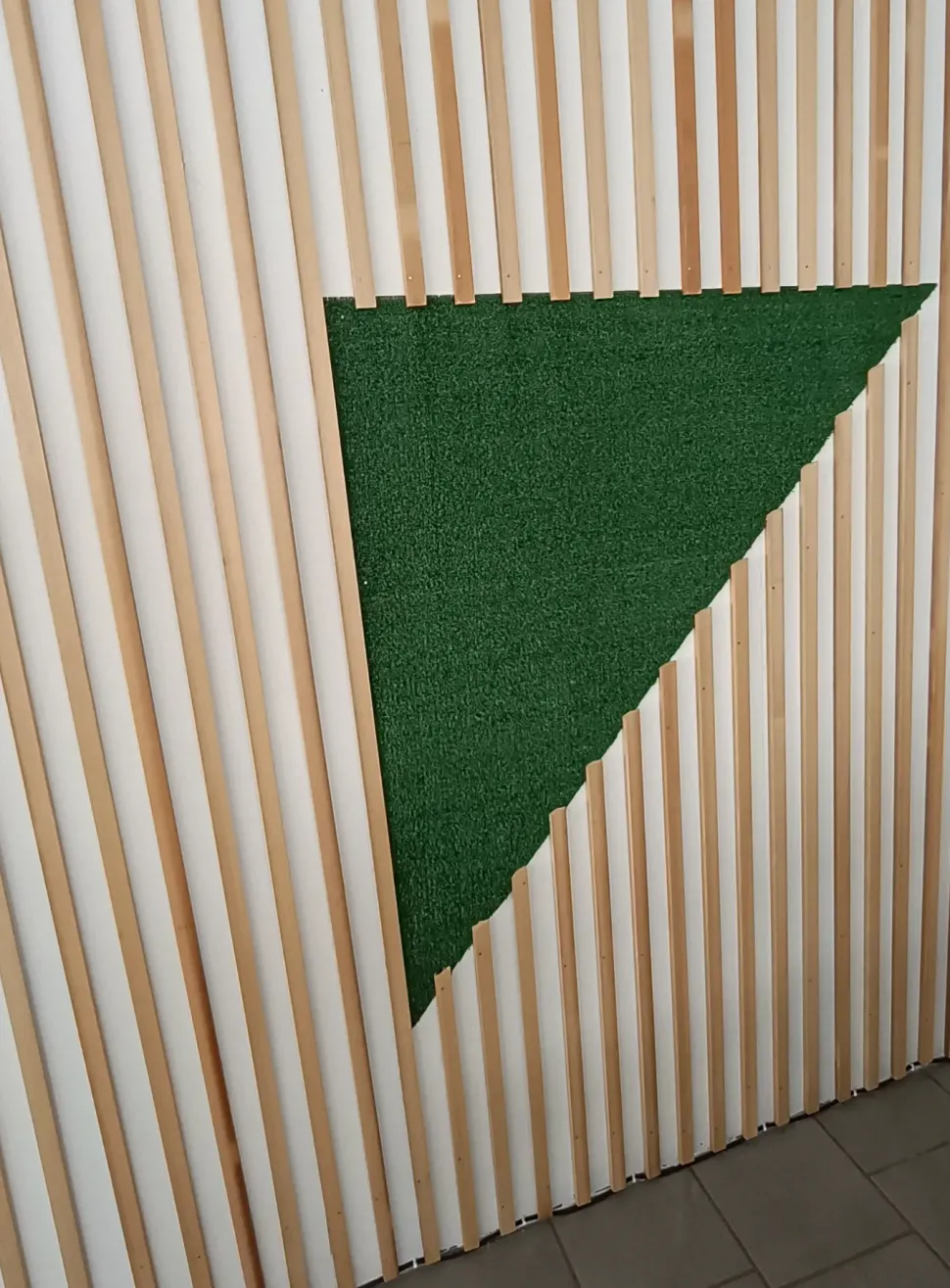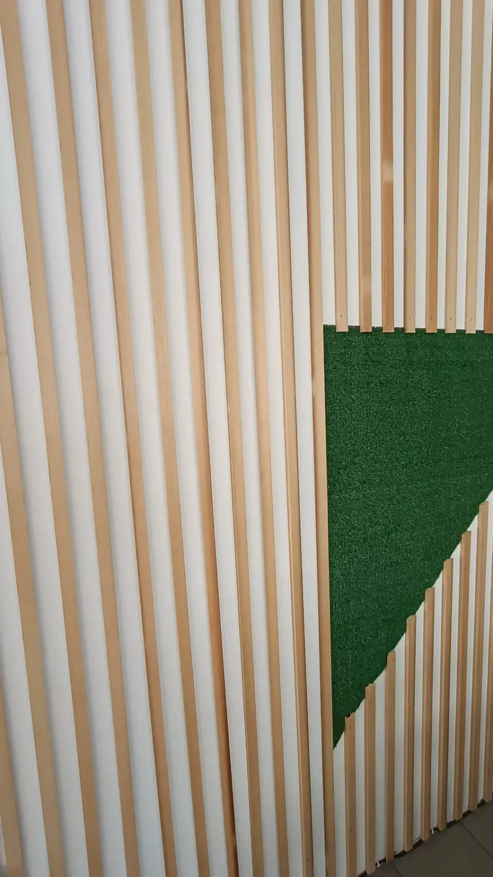 Decorazione a listelli in legno per pareti, soffitti , ecc. completamente personalizzabile in misure e finiture contattateci per un preventivo, il prezzo sarà stimato in base ai mq. e alla dimensione. Articolo installato presso il nostro negozio e visionabile. Prezzo riferito alla misura cm. 270 x 300.