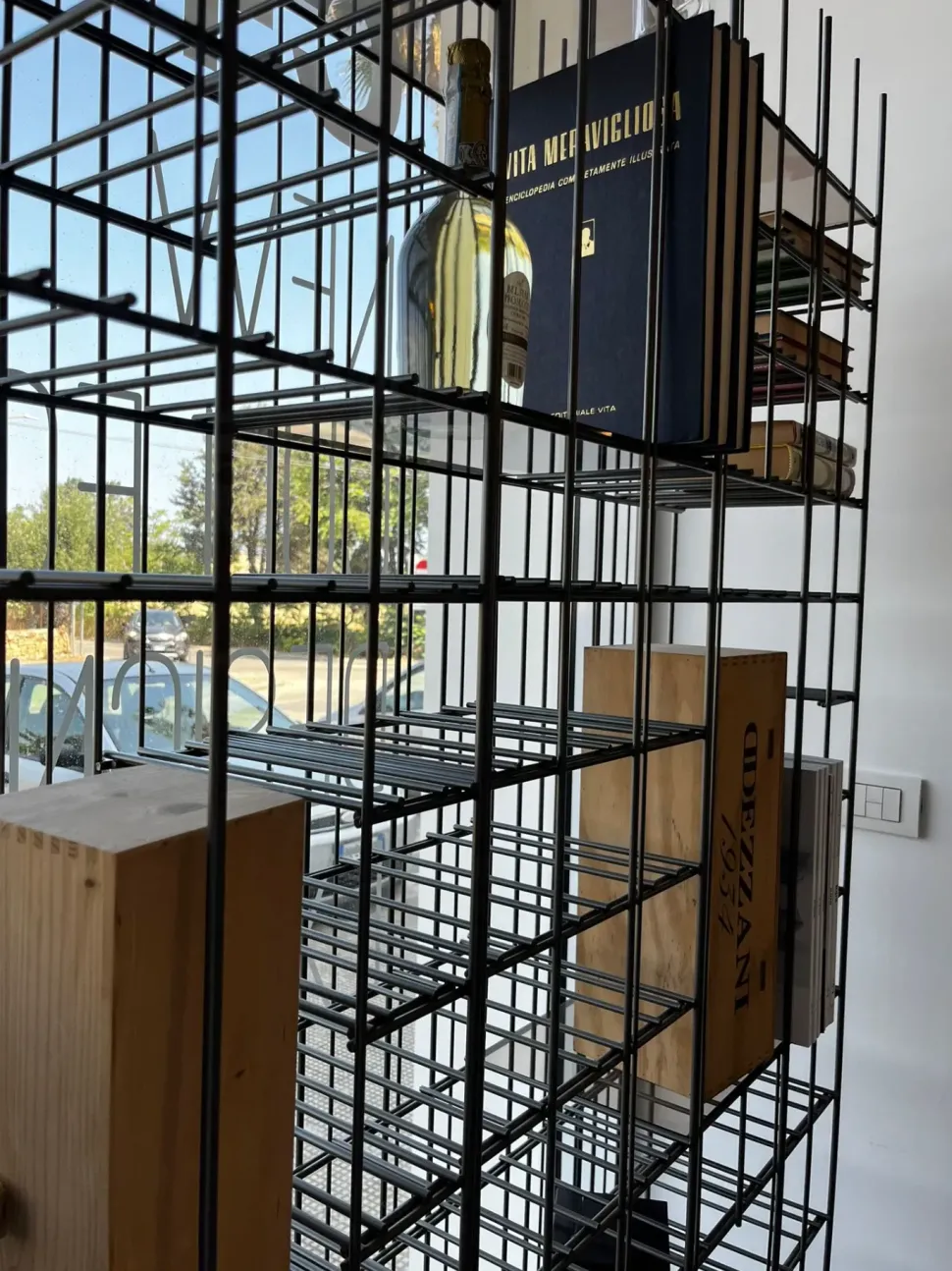 Ogni bottiglia inserita diventa parte del disegno, trasformando Metrica Winery in una griglia estetica in continua evoluzione. Il vuoto e il pieno dialogano con eleganza, dando forma a un oggetto che arreda, espone e racconta.