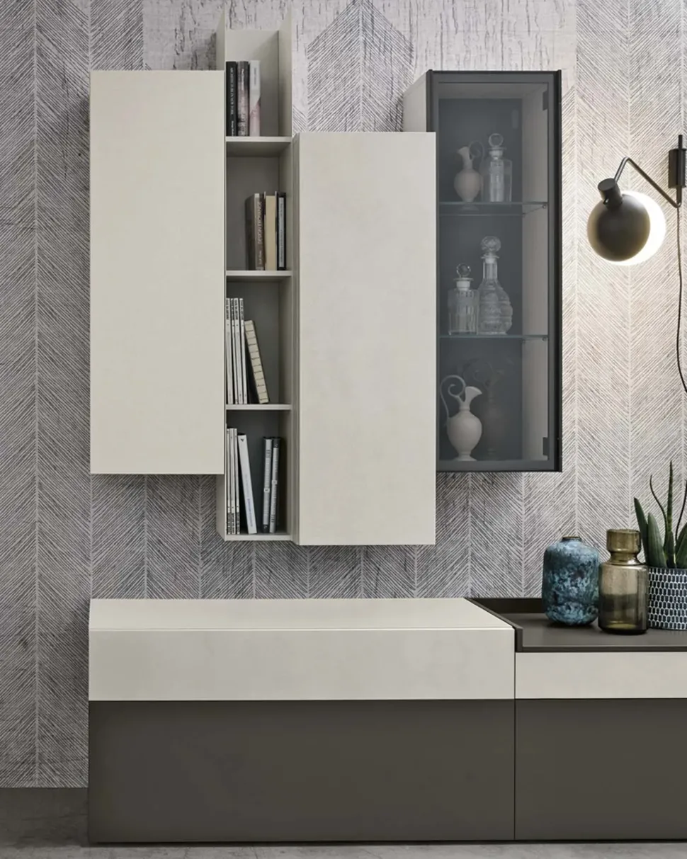 - Che tu desideri ultimare una zona living di ogni richiamo stilistico, sia esso legato alla tradizione o minimal chic, questo tipo di parete attrezzata A112 saprà evidenziare le doti estetiche del locale pur rimanendo imprescindibile dal punto di vista pratico, di fatto si dimostrerà utilizzabile come un piano d’appoggio plurifunzionale.