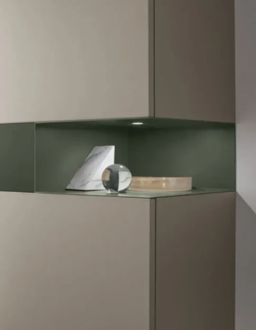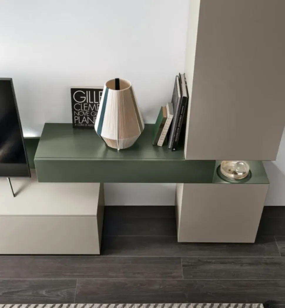 Finiture della composizione: Materico opaco arena, Laccato opaco bosco n. 168.