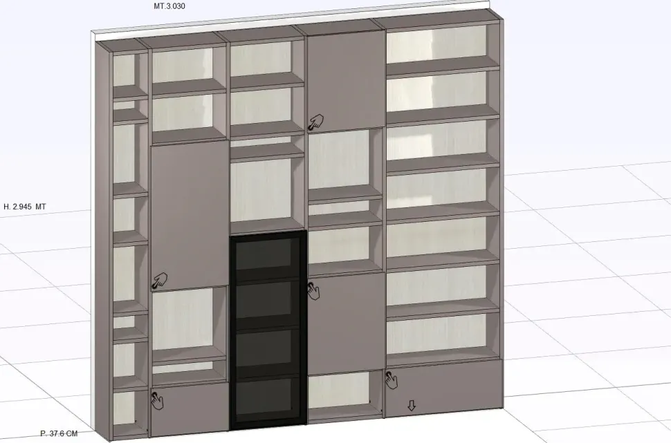 Le ante con sistema push pull offrono una soluzione pratica e raffinata per accedere facilmente agli spazi interni, mantenendo al contempo un’estetica pulita e lineare. La disposizione dei vani aperti e chiusi permette di personalizzare l’organizzazione degli oggetti, dai libri agli accessori decorativi, creando un equilibrio perfetto tra contenimento e esposizione.