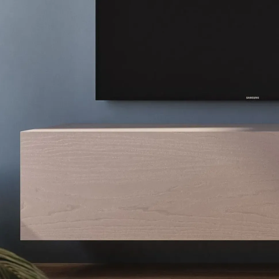 La composizione per la zona giorno qui presente è realizzata in materiali pregiati e resistenti negli anni: questo modello, in particolare, è in legno.