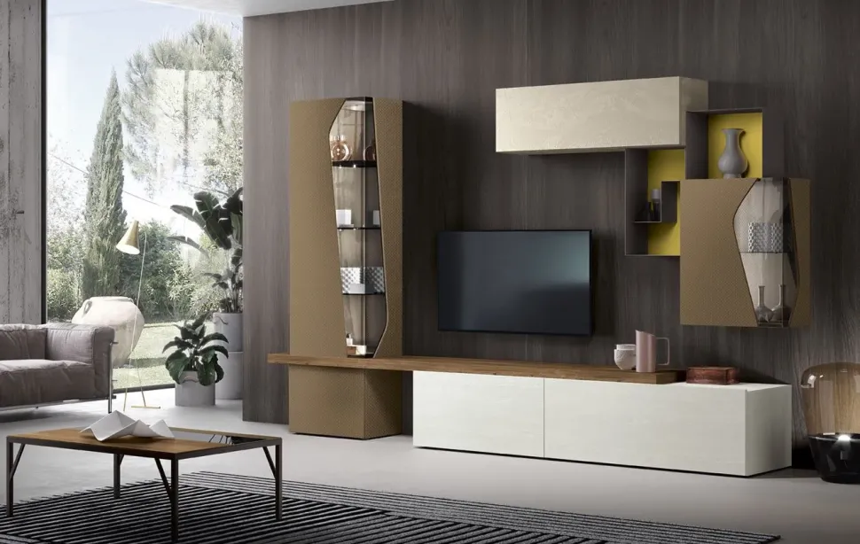 Per arricchire un living moderno opta per una parete attrezzata che mantenga una certa coerenza di stile, come questo modello Corso 11 a prezzo ribassato.