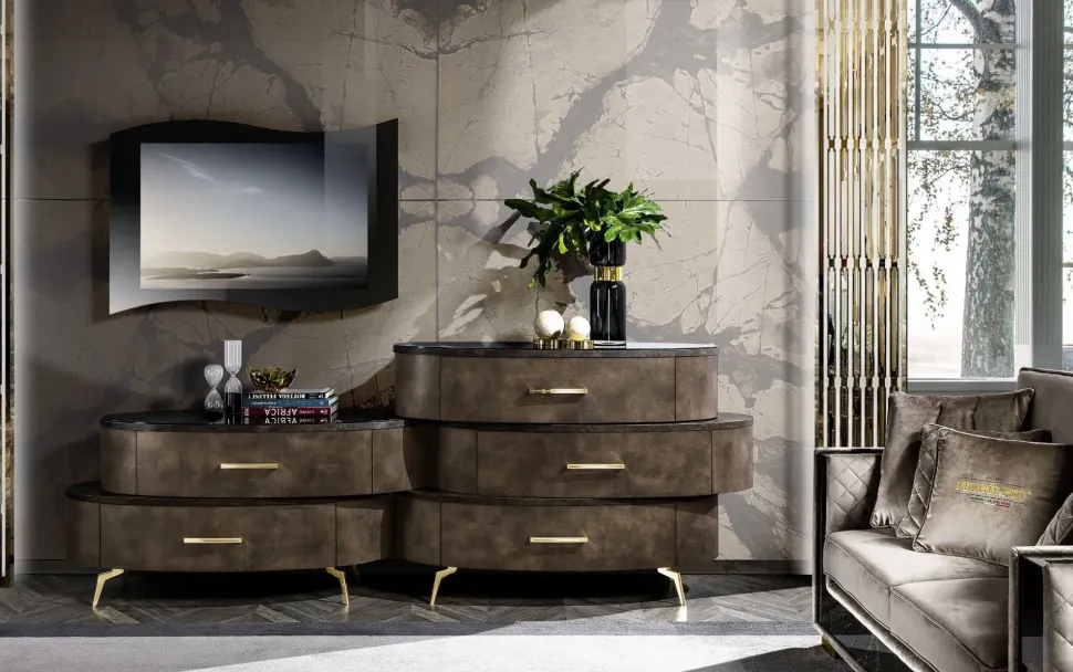 - Forme decise e uno stile unico contraddistinguono questa composizione per la zona giorno, rendendola ideale per impreziosire un luogo in stile design.