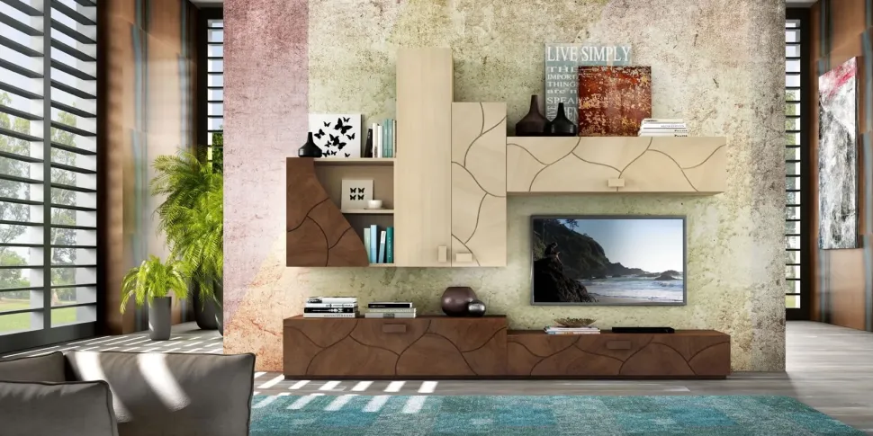 - Questa composizione per il soggiorno si dimostrerà il miglior acquisto se desideri una parete attrezzata push–pull dalle forme decise.