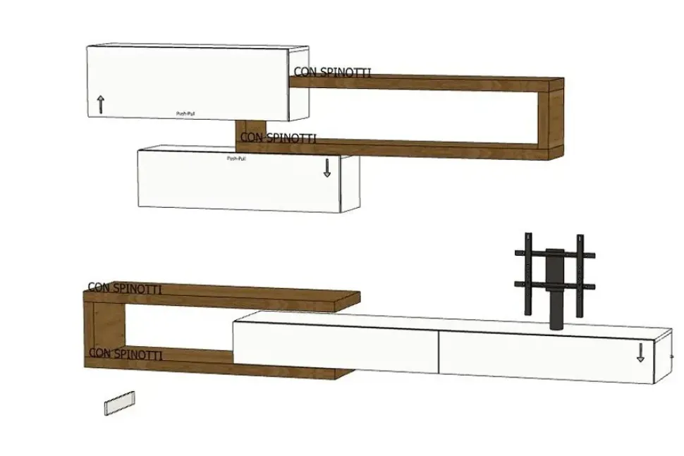 La composizione per il living qui disponibile è realizzata in materiali di qualità e che resistano negli anni: questo modello, in particolare, è in legno.