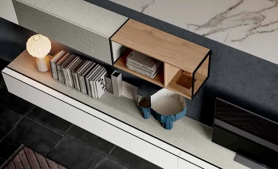 - Dai vita al soggiorno design che hai sempre sognato: le pareti attrezzate di questa collezione Imab group ti permetteranno di impreziosire la zona giorno seguendo una certa idea di stile.