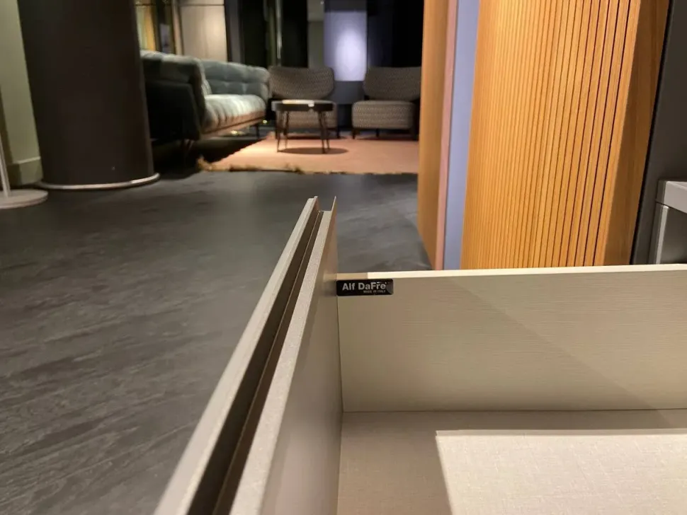 In foto è ben visibile il melamminico con cui questa parete attrezzata è stata realizzata: la pluriennale competenza Alf Da Fre assicura materiali sempre resistenti e belli.