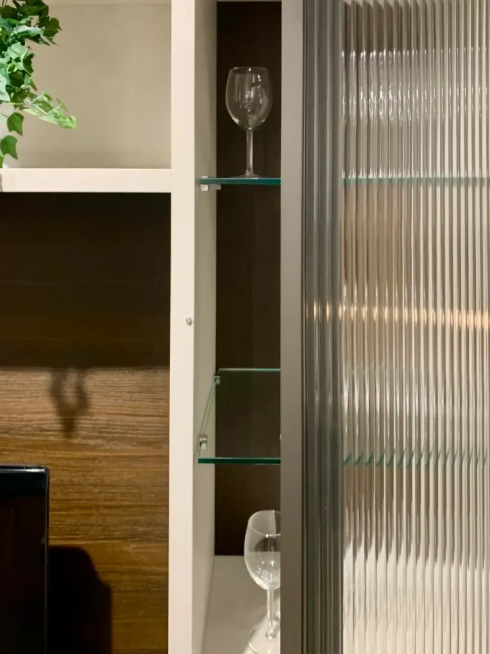 Parete attrezzata Parete a spalla vano tv e pensili vetro  di Tomasella in OFFERTA OUTLET