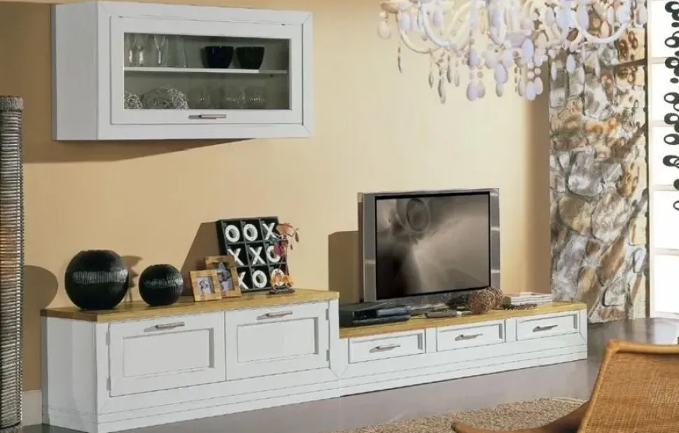 Arreda il tuo soggiorno con uno dei nostri mobili e complementi con maniglia: la parete attrezzata Provenzale ti aspetta per arricchire uno spazio operativo e pratico.