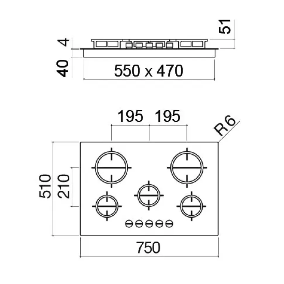 – Acciaio inox Aisi 304 e Vetroceramica spessore 4 mm