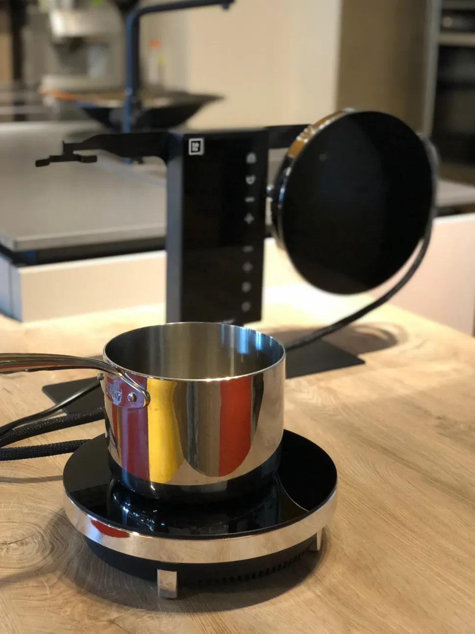 E’ un elemento innovativo per cucinare formato da due piastre a induzione che lasciano libero il piano cucina: quando serve è possibile prenderne una o entrambe, per poi riporle nuovamente a muro una volta terminato l’utilizzo.