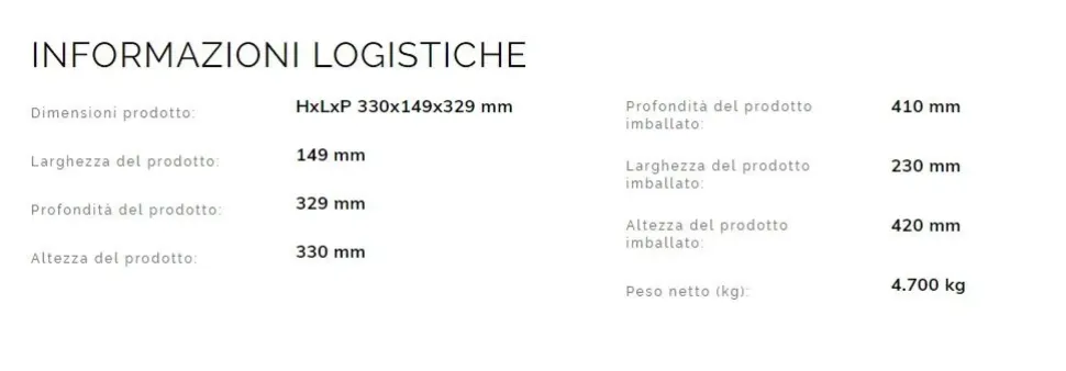 - Spese Trasporto: trasporto incluso nazionale (no isole)