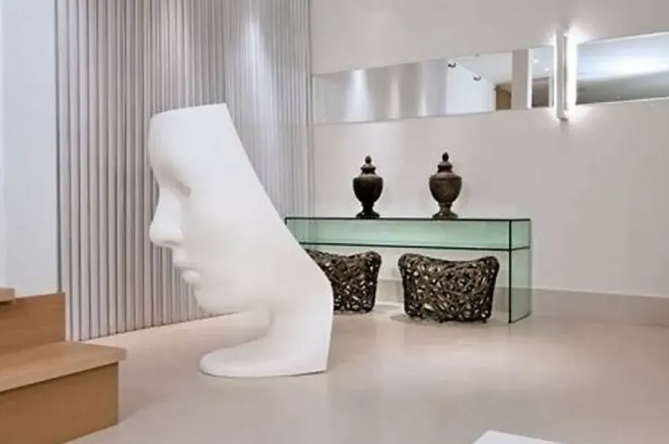Fabio Novembre utilizza il furniture design per raccontare delle storie. Storie intense e coinvolgenti ove sovente protagonista è la figura umana. Una figura umana capace di farsi astratta e universale, capace di proporre una bellezza mitizzata come succedeva con l’arte greca. Così in Nemo un volto dalle sembianze classiche viene scavato per creare uno spazio abitabile. Una testa-poltrona quindi, vissuta dall’interno e che, come una maschera, cela e contemporaneamente rivela il suo abitante.