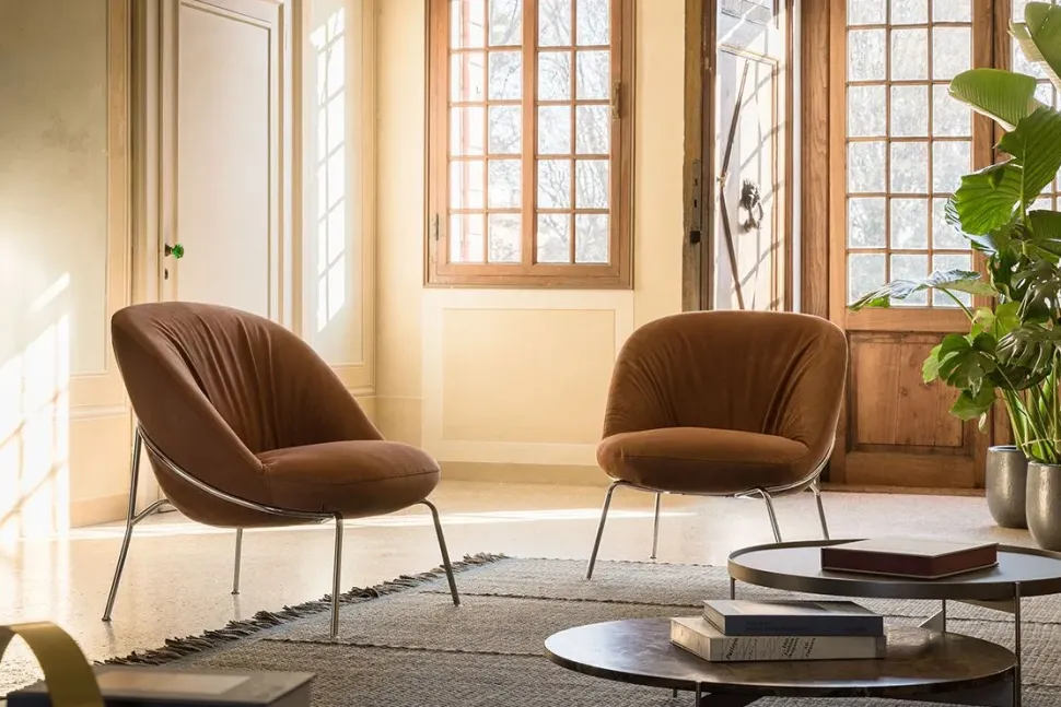 Versatile, elegante, sinuosa. La poltrona Ella è il risultato di una ricerca formale tesa all’equilibrio tra stile e funzionalità: contemporanea, raffinata e accogliente, è perfetta per ambienti privati e pubblici. La seduta e lo schienale nascono da un unico volume imbottito, che si schiude offrendo un sostegno avvolgente e confortevole. Il basamento in tubolare di acciaio, abbraccia e sostiene la scocca donando alla poltrona leggerezza e dinamismo grazie ai profili leggeri e curvilinei. L’estetica è impreziosita da delicati dettagli, come l’arricciatura libera nello schienale e il grois grain, che può essere scelto in tinta con il rivestimento o a contrasto. Ella è disponibile anche in vesrione girevole con base a 4 razze, ideale per l’utilizzo contract.