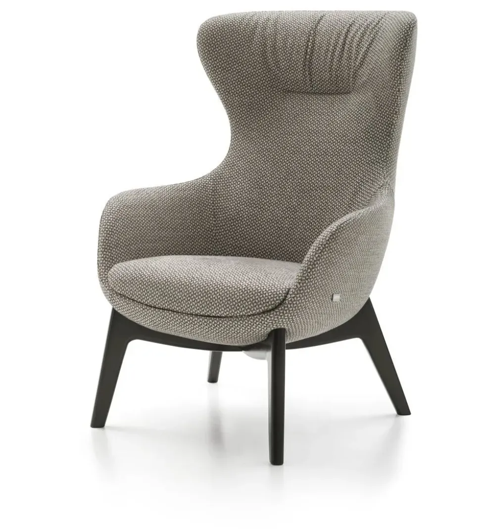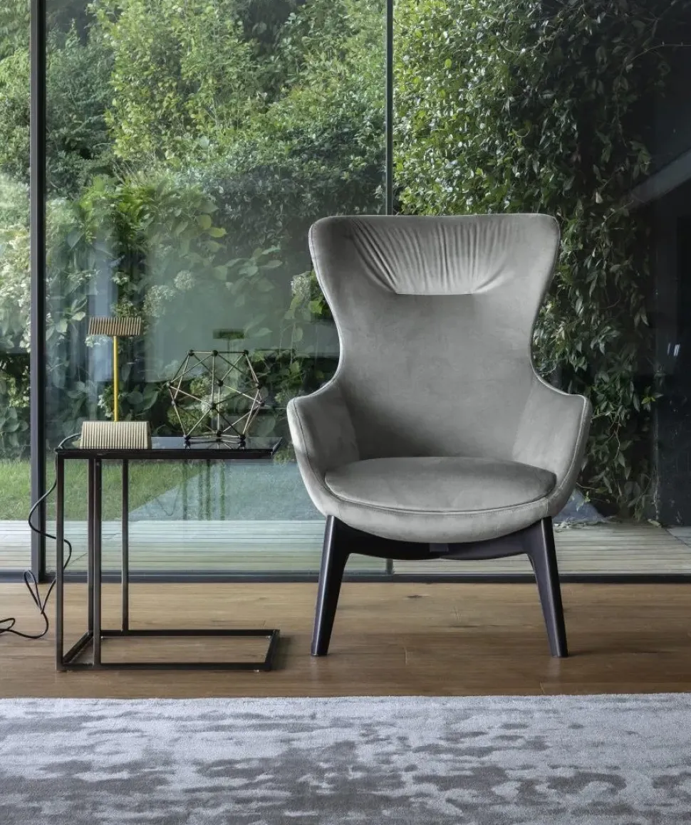 Iseo reinterpreta in chiave contemporanea le classiche poltrone bergére attraverso un estetica nuova. La base in legno Wengè slancia e garantisce un altezza di seduta ideale per un comfort ottimale. La cucitura sullo schienale funge da elemento di design ma ne amplifica anche il comfort. Possibilità di scelta del tessuto, colore piedi base e se fissa o girevole. Poltrona da ordinare. Prezzo promo riferito a poltrona con base fissa e tessuto Cat. D