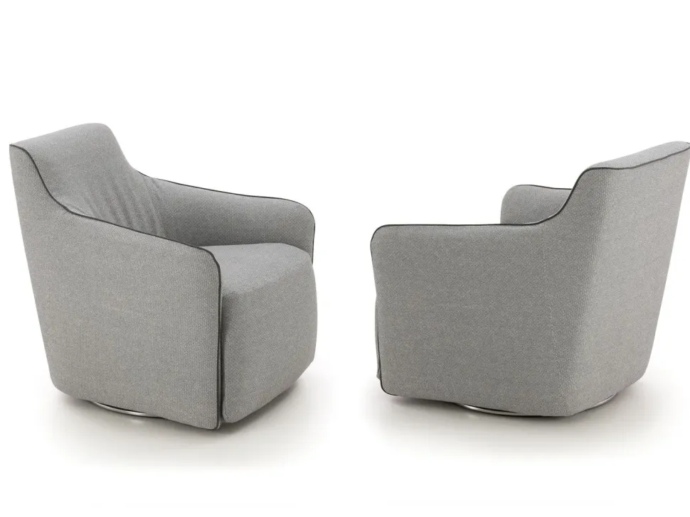 Janet outlet è una poltrona da lettura girevole in tessuto sfoderabile, ideale per arredare il salotto di abitazioni giovani e moderne.